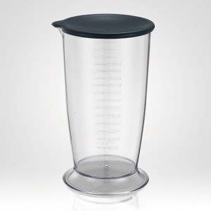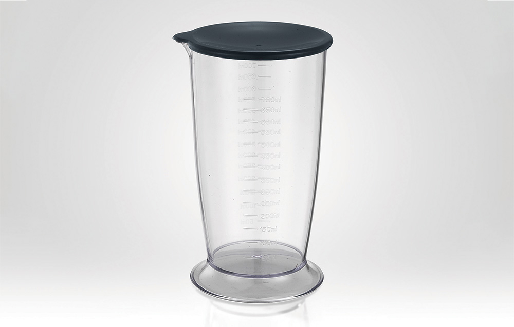 Egy 700 ml-es mérőedényt találsz, amely megkönnyíti a hozzávalók mérését és turmixolását. A fedél lehetővé teszi a kész étel tárolását anélkül, hogy másik edénybe kellene önteni, ami tovább növeli a mixer funkcionalitását.