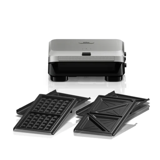 - Biztonságos és stabil használat: A hőszigetelt fogantyúk megakadályozzák az égési sérüléseket, a csúszásmentes lábak pedig stabilitást biztosítanak a sütés során. A biztonságos reteszelő mechanizmus gondoskodik a lapok megfelelő záródásáról.