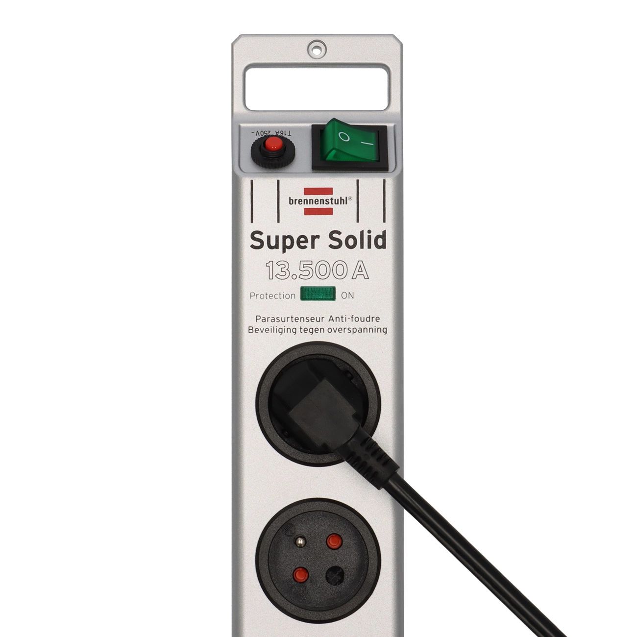 Fedezze fel a Brennenstuhl egyedülálló Super-Solid túlfeszültségvédős elosztóját, amely a legmagasabb szintű védelmet és funkcionalitást nyújtja. 8 földelt aljzattal van felszerelve, hatékonyan védve a csatlakoztatott eszközöket akár 13.500A-ig terjedő túlfeszültségek ellen. Tartós polikarbonátból készült, robusztus szerkezetet, ergonomikus kialakítást és számos biztonsági funkciót nyújt. A 2,5 méteres kábelhossznak köszönhetően lehetővé teszi az eszközök kényelmes elrendezését bármely helyiségben. Elegáns ezüst színe és a falra szerelhetőség lehetősége révén minden belső térhez kiválóan illik. Válassza a német Brennenstuhl márka minőségét és megbízhatóságát, és élvezze a nyugalmat elektronikai eszközök használata során!