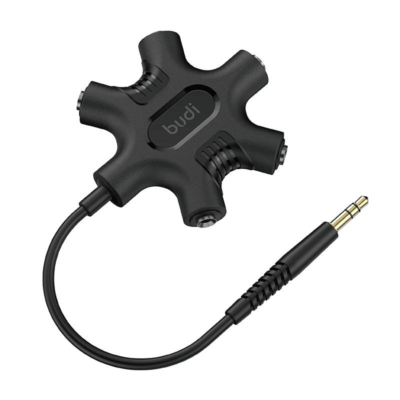 A Budi Rockstar adapter 5 mini jack 3,5 mm-es bemenettel és egy mini jack 3.5 mm-es csatlakozóval rendelkezik. Ezzel akár 5 pár fejhallgatót is csatlakoztathat egyetlen eszközhöz, például okostelefonhoz.