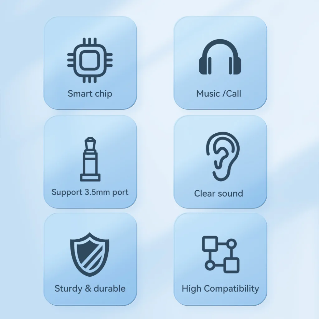 Minden 3,5 mm-es fülhallgatóval kompatibilis, és lehetőséget ad az in-line vezérlésre, beleértve a hangerőszabályozást, hívásokat, zenelejátszást és egyéb funkciókat. Azonban az in-line vezérlés nem elérhető az Apple eredeti 3,5 mm-es fülhallgatóinak használatakor.