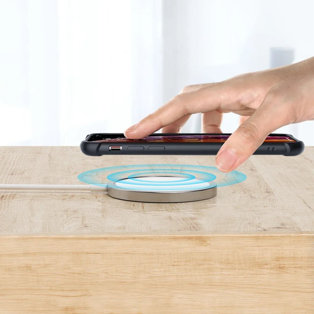 Ez a mágneses vezeték nélküli töltő kiváló minőségű mágneses gyűrűt és jól hangolt réztekercset használ, ami biztosítja a könnyű automatikus mágneses illeszkedést a hatékony töltés érdekében. Egyszerűen helyezze a telefon hátuljára, és az automatikusan illeszkedik a készülék vezeték nélküli töltőtekercséhez a hatékony töltéshez. Az erős mágneses vonzás megkönnyíti az automatikus illeszkedést és biztos tartást biztosít.