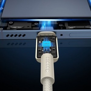 Okos E-marker Chip Technológia. Fejlett E-marker chippel van felszerelve, amely intelligensen felismeri a kompatibilis gyors töltésre képes eszközöket. Zökkenőmentesen kezeli az áramerősséget és feszültséget, hogy biztonságos, hatékony és stabil töltést biztosítson, védve eszközeidet a túltöltéstől és túlmelegedéstől.