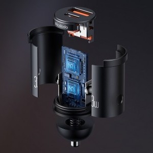 Bemutatjuk a Mcdodo CC-2320 autós töltőt, amely gyors és hatékony töltést biztosít eszközeidnek, akár útközben is. Két kimenettel – USB-A és USB-C – rendelkezik, ez az autós töltő maximális 30W kimeneti teljesítményt kínál, lehetővé téve két eszköz egyidejű, gyors töltését.