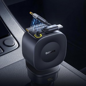 Car Charger PrimeTrip VR2 Max (C0206500) - Gyors töltés, visszahúzható kábel, USB, 3x USB-C, 163W - Kozmikus Fekete Baseus