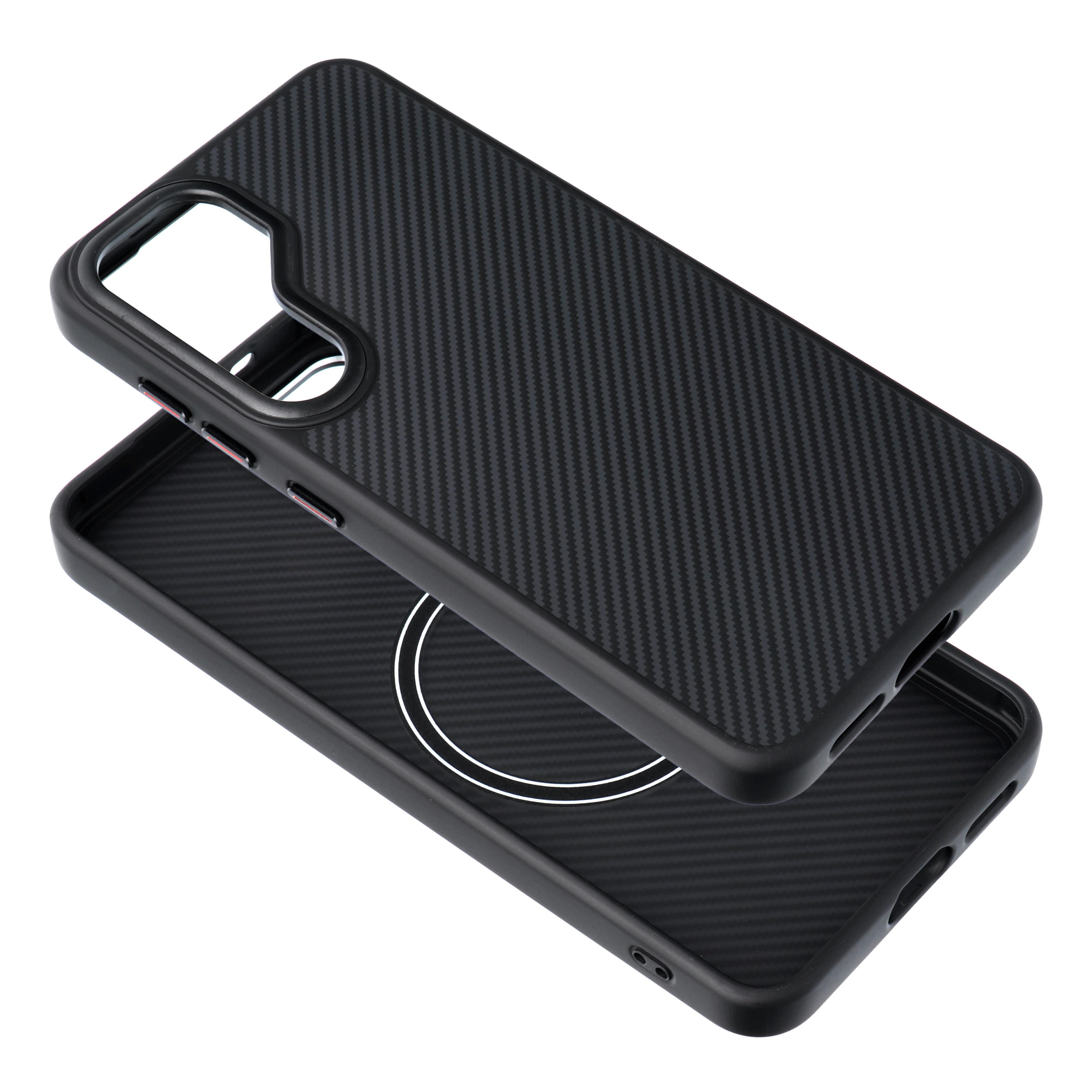 A Carbon Elite Mag tok tökéletesen ötvözi az eleganciát és a funkcionalitást. Karbon ihlette mintázattal van befejezve, amely kiemelkedik merész, férfias dizájnjával, ami azonnal magára vonja a figyelmet. A karbon minta modern megjelenést kölcsönöz a toknak, és kiemeli annak prémium jellegét. A PC és TPU anyagok használata kivételes tartósságot és hatékony védelmet nyújt a karcolások és ütések ellen, miközben megőrzi készüléked karcsú profilját. Az erős MagSafe támogatja a vezeték nélküli töltést és a mágneses rögzítést, ami ideálissá teszi a magas igényeket támasztó felhasználók számára.
