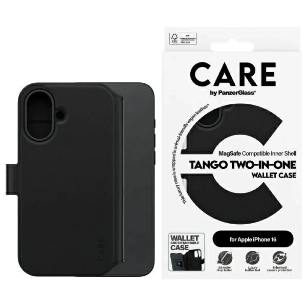 CARE by PanzerGlass Feature Tango 2in1 Wallet MagSafe tok iPhone 16 – fekete