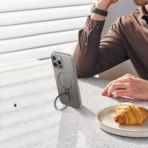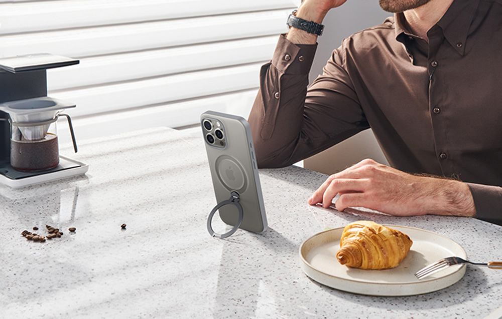 A TORRAS Ostand Spin tok praktikus tartógyűrűvel van ellátva, amely további biztonságot nyújt a telefon használata közben. Lehetővé teszi, hogy az iPhone-t biztonságosan a kezedben tartsd, így minimálisra csökkentve a véletlen leejtés kockázatát. A gyűrű állványként is funkcionál, ami növeli a kényelmet videók nézése vagy videohívások kezdeményezése közben. Mivel a betekintési szög vízszintesen 15° és 85° között, függőlegesen pedig 0° és 85° között állítható, teljes szabadságot nyerhetsz telefonod elhelyezése felett.