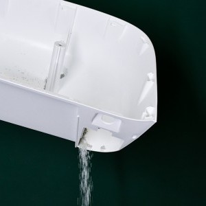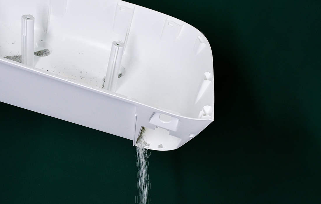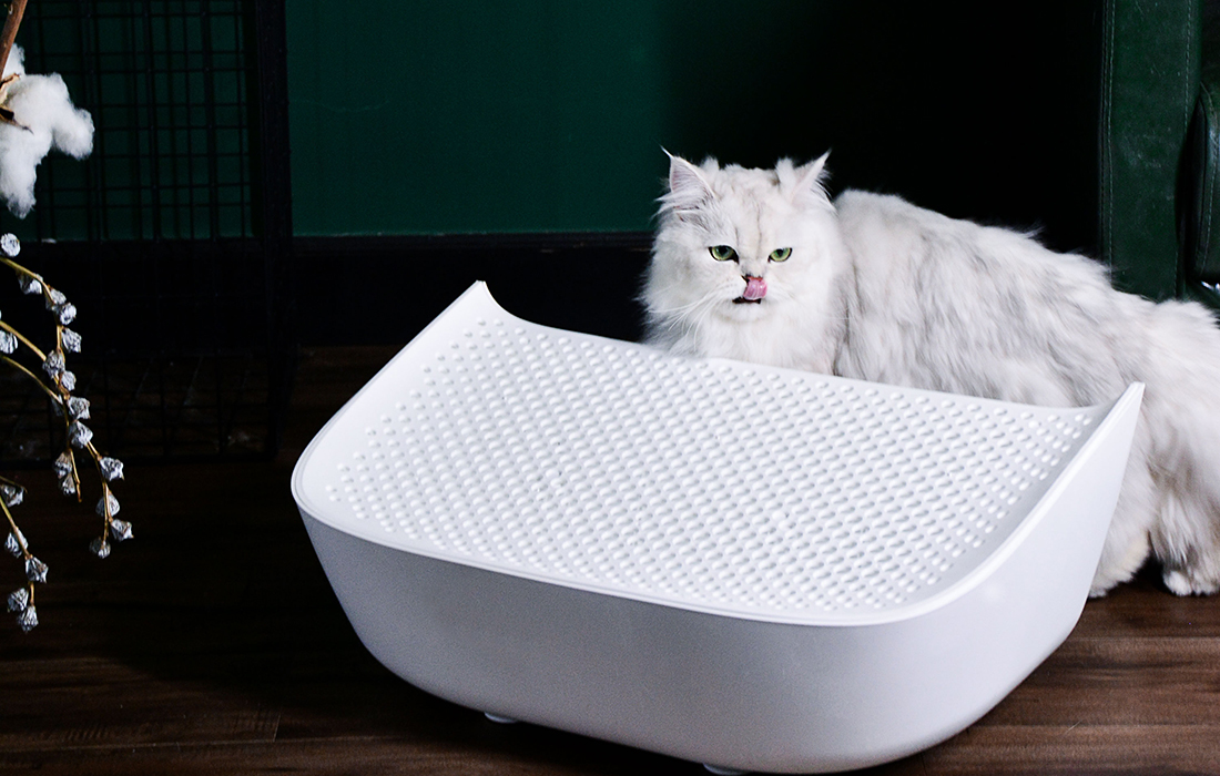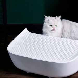 A lépcsőt magas sűrűségű rácsozattal látták el, hogy az almot, amely a macska lábáról és szőréről lehullana, a nagy belső tartályba gyűjtse, nem pedig a padlóra. A hátul elhelyezett nyílás gyors és kényelmes kiürítést tesz lehetővé.