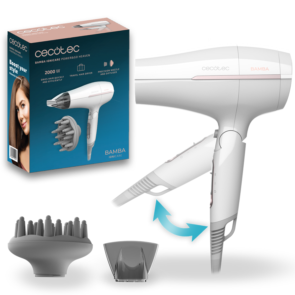 Fedezze fel a CECOTEC IoniCare Power&Go Heaven ionos hajszárítót (cikkszám: 04415), amely a professzionális teljesítményt ötvözi a kompakt kialakítással és az ionos technológia előnyeivel. Készüljön fel a gyors, hatékony és kíméletes hajszárításra, bárhol is járjon!
