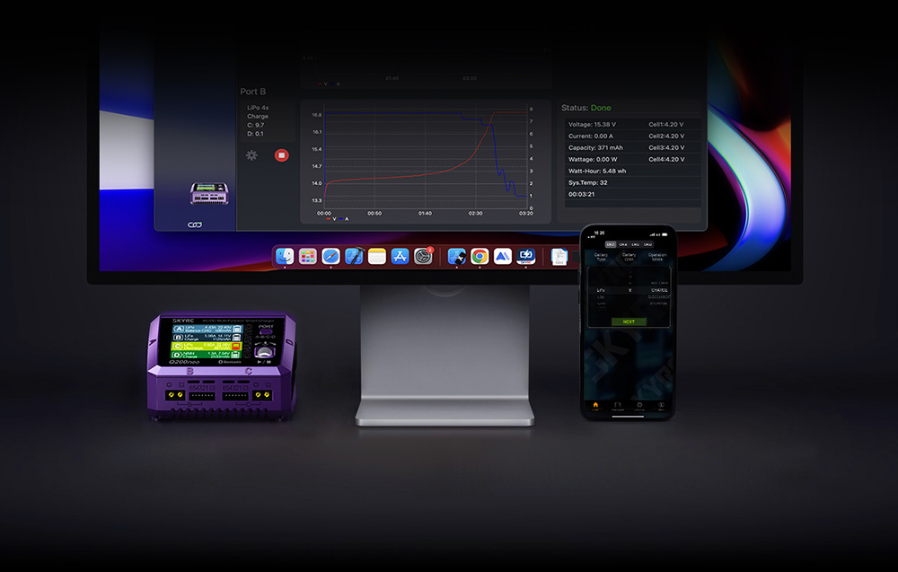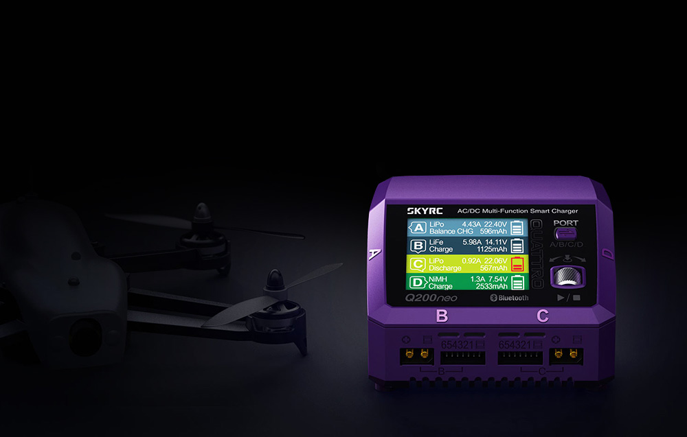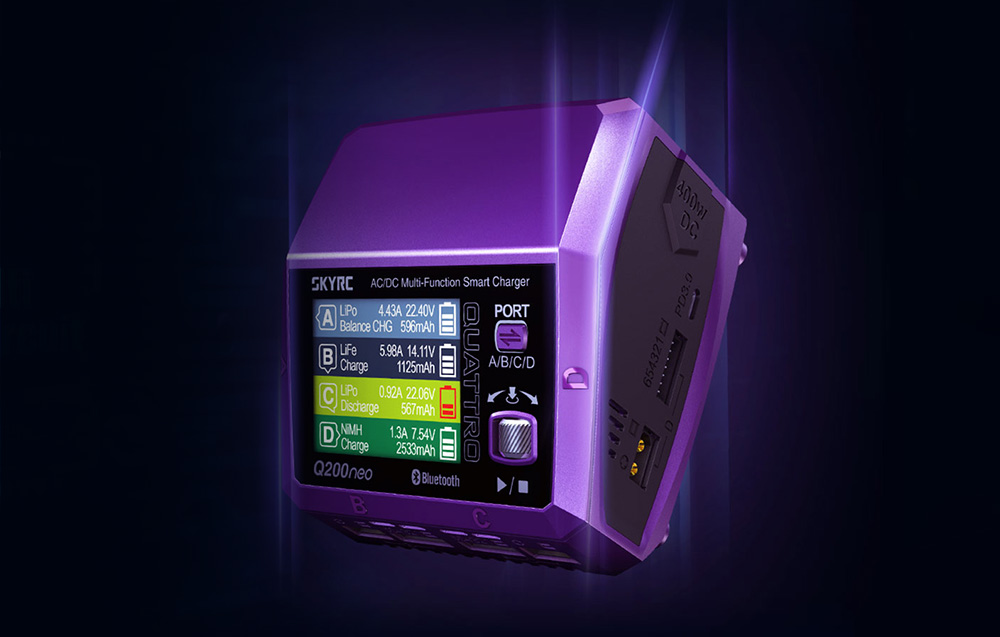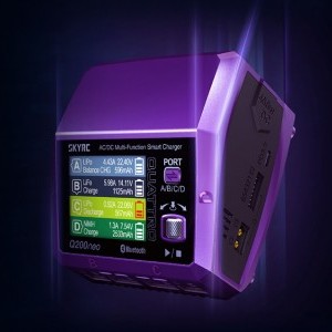 Az innovatív SkyRC Q200neo töltő tökéletes választás minden RC-rajongó számára. Lehetővé teszi 4 különböző akkumulátor egyidejű töltését, és egyenárammal (DC) és váltakozó árammal (AC) egyaránt működtethető. Akár 400 W-os teljesítményével és beépített, nagy pontosságú kiegyenlítőjével tűnik ki, amely ±0,02 V-on belül optimalizálja a feszültségkiegyenlítést. Nagy teljesítményű képességei ellenére a termék meglepően kompakt és hordozható.