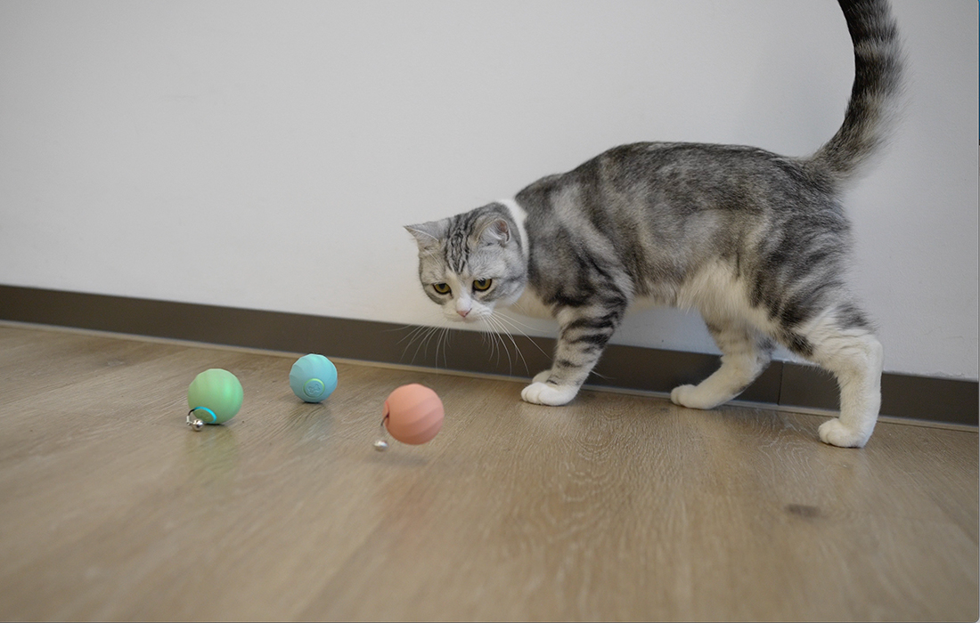 A labda egy 6 tengelyes egyensúlyérzékelővel van felszerelve, amely valós időben figyeli a játékot, a megfelelő időben igazítja mozgását, ösztönözve a kisállatot az aktivitásra. Emellett úgy van kialakítva, hogy 10 perc működés után automatikusan kikapcsoljon 30 percre, pihenőt biztosítva a macskának/kutyának. A mellékelt USB kábel segítségével tölthető, és 1,5–4 órás üzemidővel rendelkezik. Környezetbarát szilikonból készült, kényelmes használni és csendesen működik.