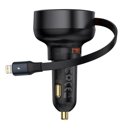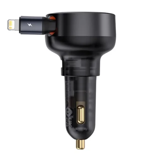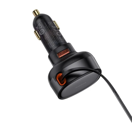 CHG Baseus Enjoyment Pro autós gyorstöltő 55W, USB Type-A + iPhone automata behúzós kábel, fekete