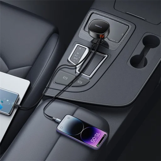 A Baseus Enjoyment Pro egy autós töltő, amely 70 cm hosszú, kihúzható, Apple iPhone kompatibilis kábellel, valamint egy USB Type-A gyorstöltő aljzattal rendelkezik. A csatlakozók érintkezői aranyozottak. A töltő személygépkocsikhoz, terepjárókhoz és teherautókhoz egyaránt alkalmas.