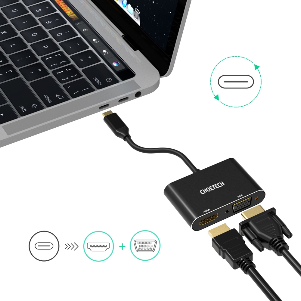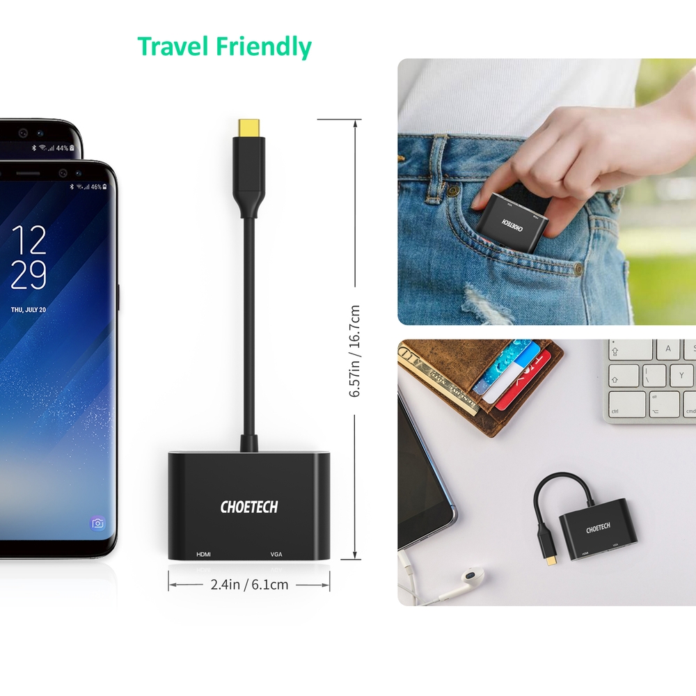 A CHOETECH USB C VGA-adapter VGA-kimenettel rendelkezik, lehetővé téve egy VGA bemeneti csatlakozóval felszerelt külső kijelző/TV/projektor egyidejű hozzáadását.