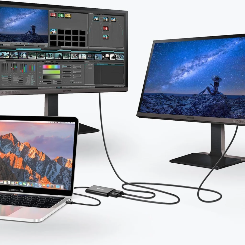 Praktikus adapter USB Type C csatlakozóval és két HDMI 2.0 csatlakozóval. Tökéletes kiegészítő azoknak, akiknek a számítógépet a monitorhoz kell csatlakoztatniuk a HDMI csatlakozón keresztül. A kütyü a „plug and play” elven működik, így nem igényel további programok telepítését. Csak csatlakoztassa az USB Type C porthoz, és azonnal használhatja. Az adapter kis súlyú és kompakt méretekkel rendelkezik, így szállítása gyakorlatilag problémamentes. Ráadásul kiváló minőségű anyagokból (alumínium + PVC) készült.