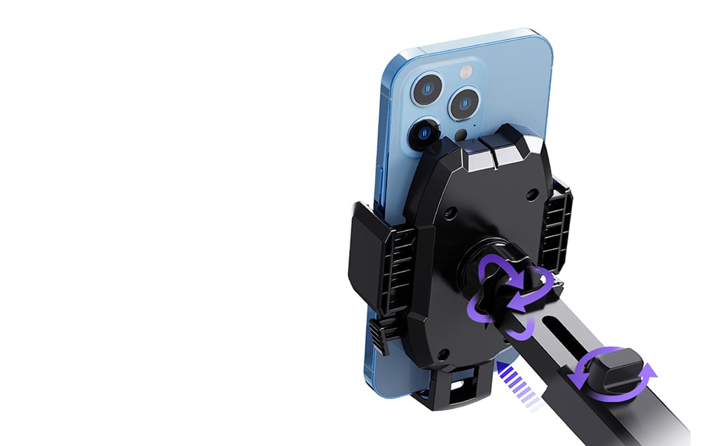 A H043 teljes mértékben testreszabható az Ön igényei szerint. A szorítókar fel-le 210 fokban állítható, a gömbfej pedig 360 fokban forgatható, ami lehetővé teszi, hogy a képernyőt vízszintesen és függőlegesen is beállítsa a tökéletes látószög eléréséhez vezetés közben.