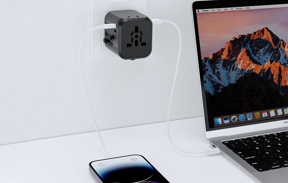 A Choetech PD5008 utazó töltő tökéletes választás utazásokhoz. Négy különböző csatlakozót kínál, így több mint 200 országban használható. Továbbá, 3 USB-A és 2 USB-C porttal van ellátva, ami lehetővé teszi több eszköz egyidejű töltését. Emellett számos biztonsági funkció védi a készülékeid a sérüléstől.