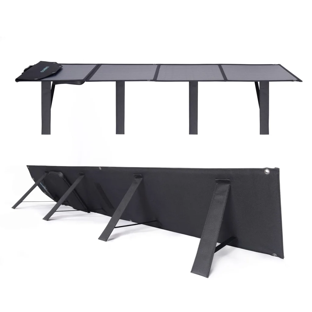 - Hatékonyan alakítja át a napenergiát elektromos árammá. Az átalakítás hatásfoka akár 20% is lehet, és a nagy panelek további állványokkal vannak megtámogatva, amelyek 45 fokos optimális szögben pozicionálják a töltőt