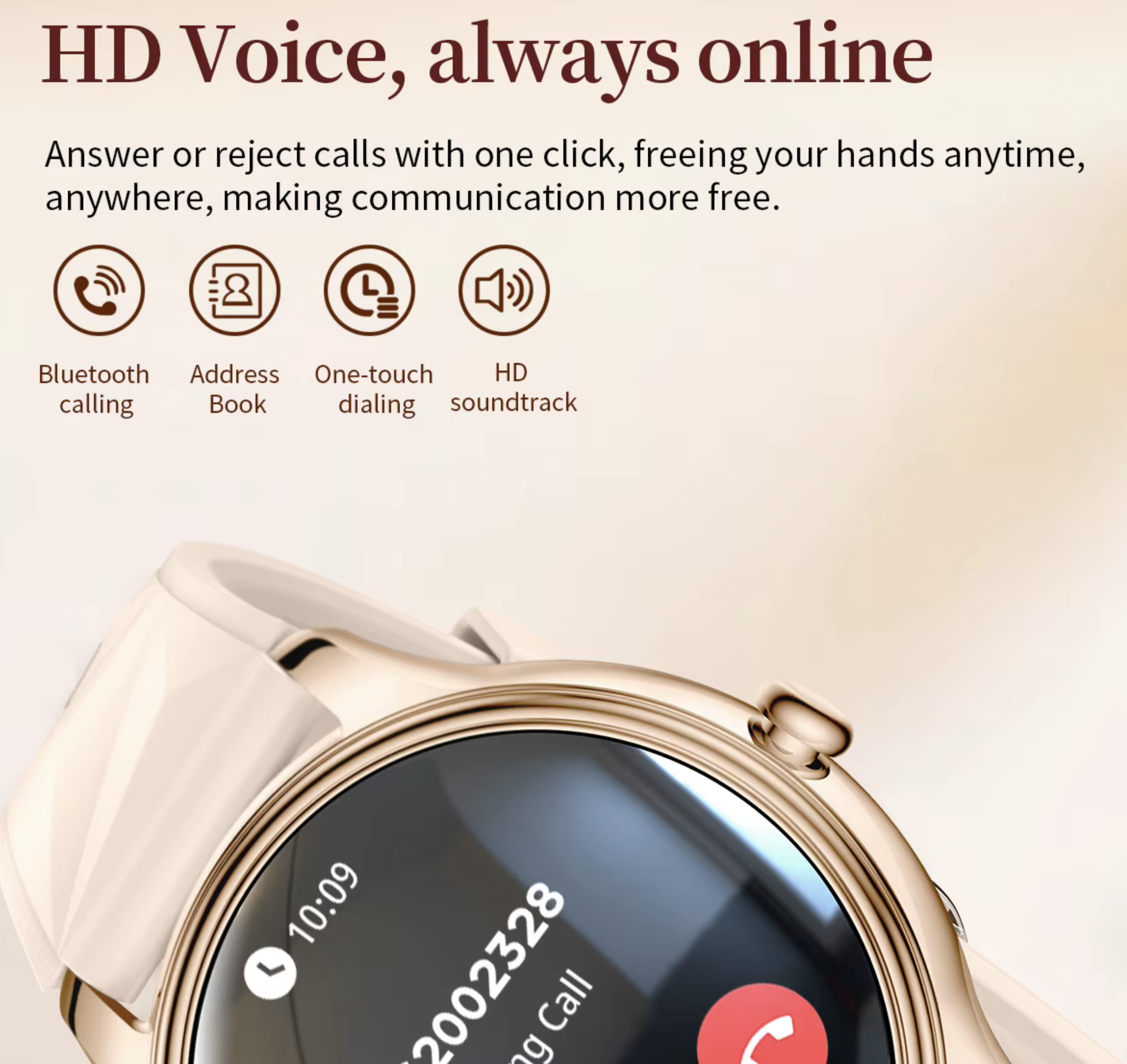 - HD Bluetooth hívások: Fogadjon vagy utasítson el hívásokat egyetlen kattintással. A beépített mikrofonnak és hangszórónak köszönhetően szabadon beszélhet, bárhol is legyen. Névjegyalbum, egyérintéses tárcsázás és HD hangminőség biztosítja a tiszta kommunikációt.