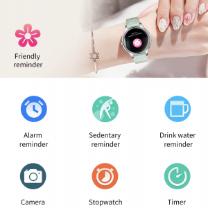 - Hasznos emlékeztetők: Beállíthat ébresztőt, mozgás-, és vízfogyasztás emlékeztetőket, hogy mindig hidratált és aktív maradjon. A távoli kamera vezérlés, stopper és időzítő funkciók is a rendelkezésére állnak.