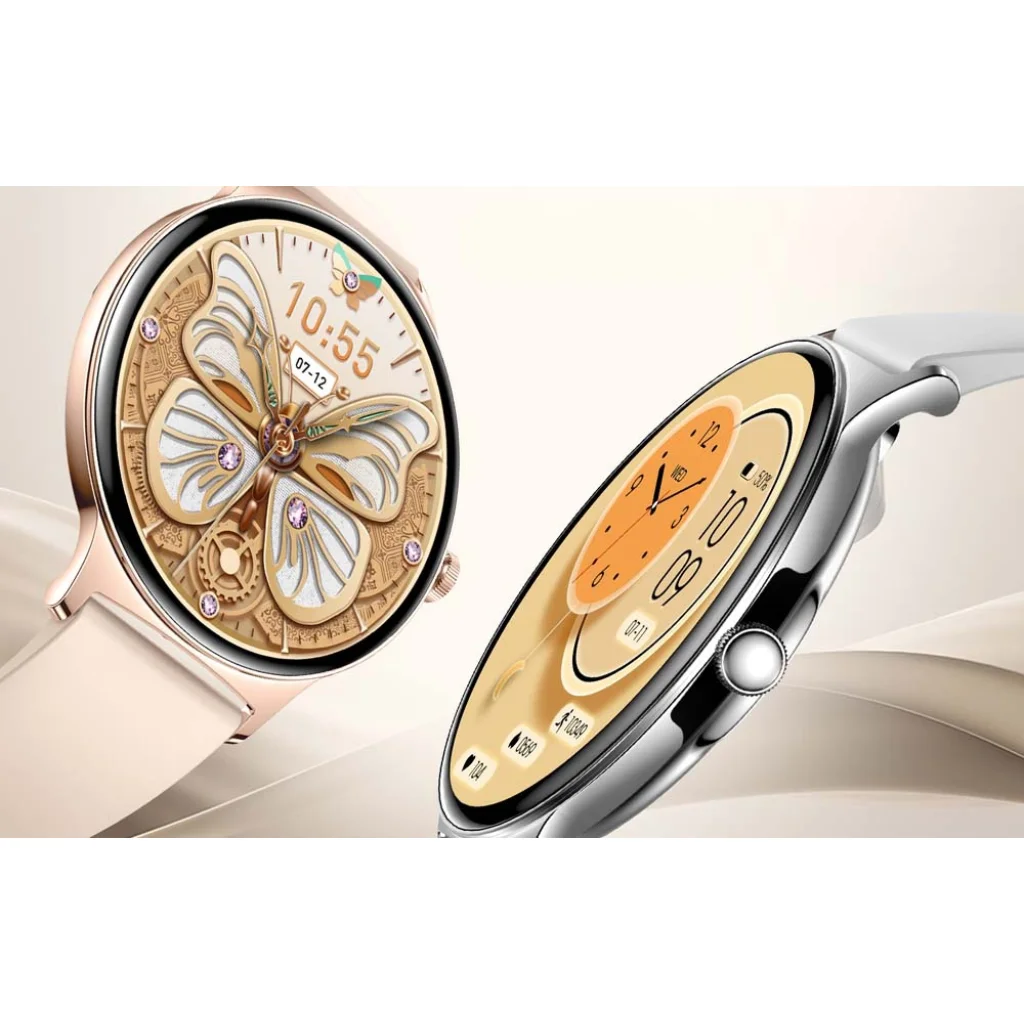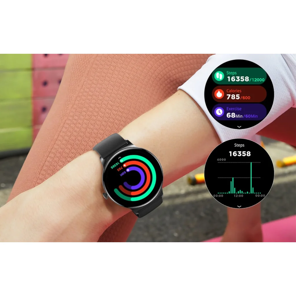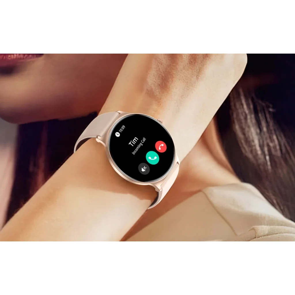 Az óra lehetővé teszi a telefonhívások lebonyolítását, ha Bluetooth-on keresztül csatlakozik a telefonhoz. Válaszolhatsz, elutasíthatod és kezdeményezhetsz hívásokat, valamint megtekintheted a híváslistát anélkül, hogy az okostelefonodért kellene nyúlnod. Az olyan alkalmazásokból érkező értesítések, mint az SMS, a WeChat, a WhatsApp és a naptár szintén megjelennek a képernyőn. A menüben való navigáláshoz egy forgatható korona szolgál, ami jelentősen megkönnyíti a használatát.