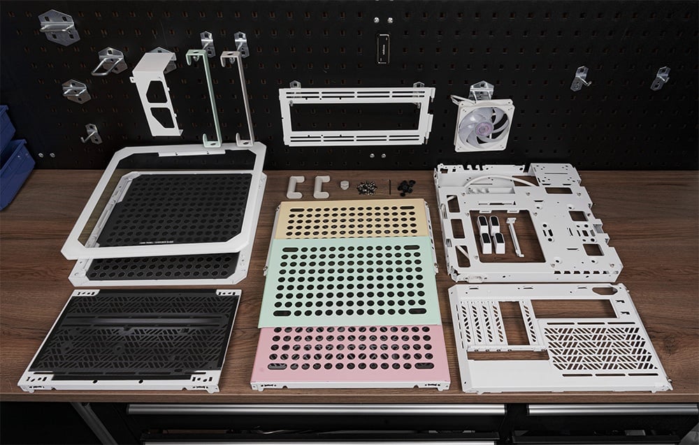 A Cooler Master Qube 500 Flatpack egy tágas, mégis kompakt, 33,44 literes számítógépház, amely önösszeszerelő készletként érkezik. Támogatja az E-ATX formátumú alaplapokat, a 365 mm hosszúságú grafikus kártyákat, akár nyolc ventilátort és különböző típusú vízhűtéseket. Moduláris felépítésével is kitűnik, így remek választás lesz azoknak, akik maximális rugalmasságra vágynak. A Macaron Edition készlet emellett különböző színű cserélhető paneleket, egy tartalék konzolt és két kampót tartalmaz a tartozékok számára.