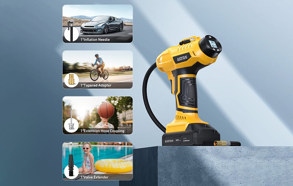Az AstroAI JY16P160-18 gumifelfúvó tökéletes megoldás minden autós, motoros vagy biciklis számára. Sokoldalúsága nem csak a gumiabroncsok, hanem a labdák vagy felfújható kiegészítők pumpálását is lehetővé teszi. A készülék 160 PSI maximális üzemi nyomást ér el, a 22 l/perc szivattyúzási sebesség pedig gyerekjátékká teszi a pumpálást.