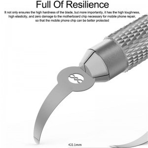 - Precíz és ultravékony kialakítás: A megerősített pengetest rendkívül vékony éllel rendelkezik (hegy vastagsága ≤0.1mm, általános penge vastagsága 0.3mm), amely kifejezetten a CPU és más rétegelt alkatrészek precíz leválasztására van optimalizálva.