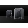 Átgondolt tervezés és felhasználói kényelem: Az átlátszó falakkal ellátott zárt kamra lehetővé teszi a nyomtatási folyamat valós idejű megfigyelését. A beépített aktívszenes szűrő csökkenti a szagokat és megtisztítja a levegőt a forró szálakból kibocsátott részecskéktől. A csendes üzemmód lehetővé teszi, hogy a nyomtató 45 dB-t meg nem haladó hangerővel működjön. A nyomtató minden részletére odafigyeltek, a rezgéscsökkentő lengéscsillapítóktól a megerősített kábelvezetésig. A fúvóka tisztításához szilikoncsíkot, csillapított zsanérokat és fröccsenésgátló fóliát is talál az ajtón. A nyomtatóban helyet kapott egy oldalsó orsótartó is, és számos kész tartozék is elérhető 3D modellként.
