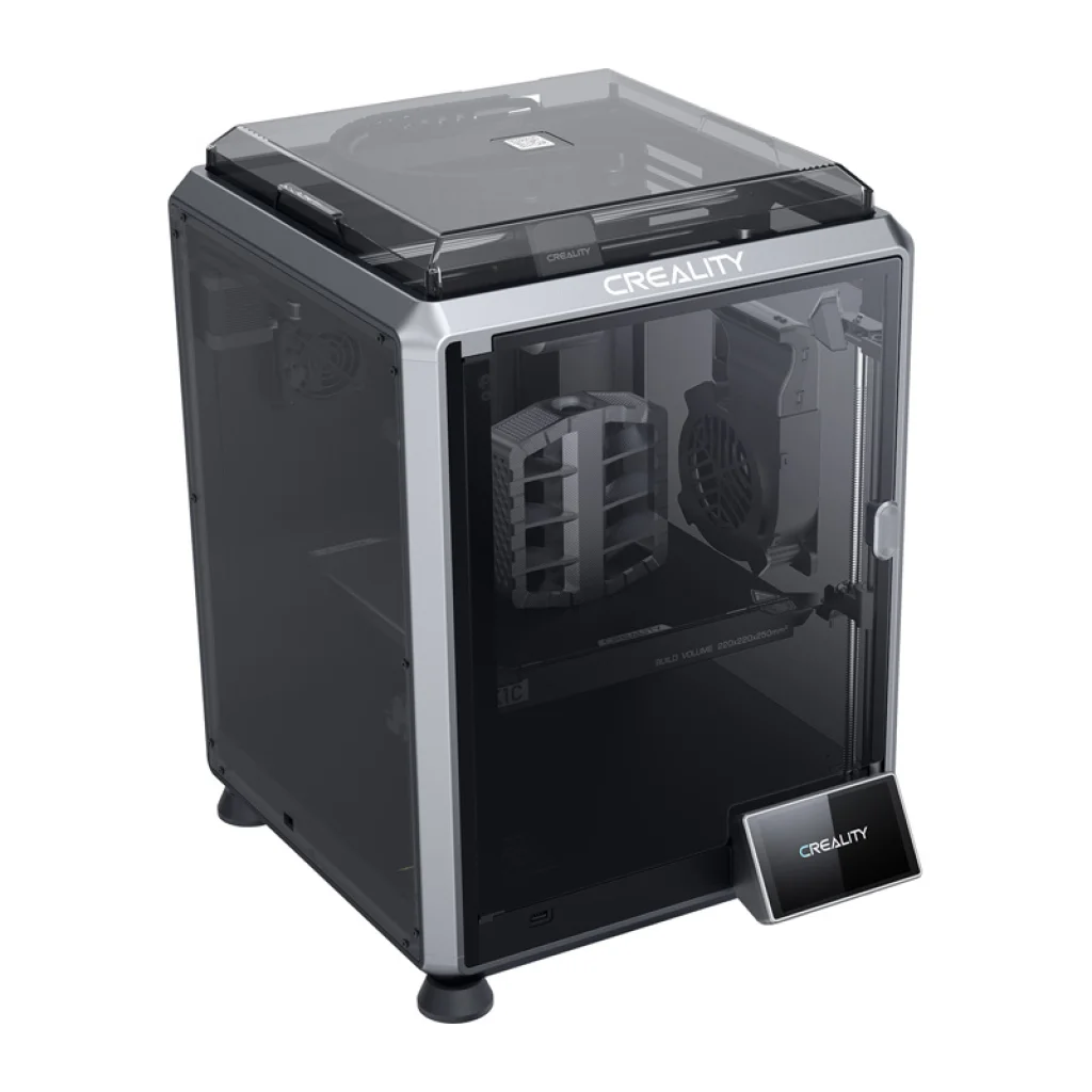 A Creality K1C egy fejlett 3D nyomtató, amelyet gyárilag előre összeszerelnek és kalibrálnak, így az első nyomtatás elindítása mindössze 3 percet vesz igénybe. Zárt, 220 × 220 × 250 mm-es munkakamrával rendelkezik, amely stabil környezetet biztosít a nehezebb filamentekkel való munkához. A beépített, duguláselhárító készlettel ellátott extruder csökkenti a meghibásodás kockázatát. Az egész a nagy teljesítményű Creality OS operációs rendszer alatt fut.