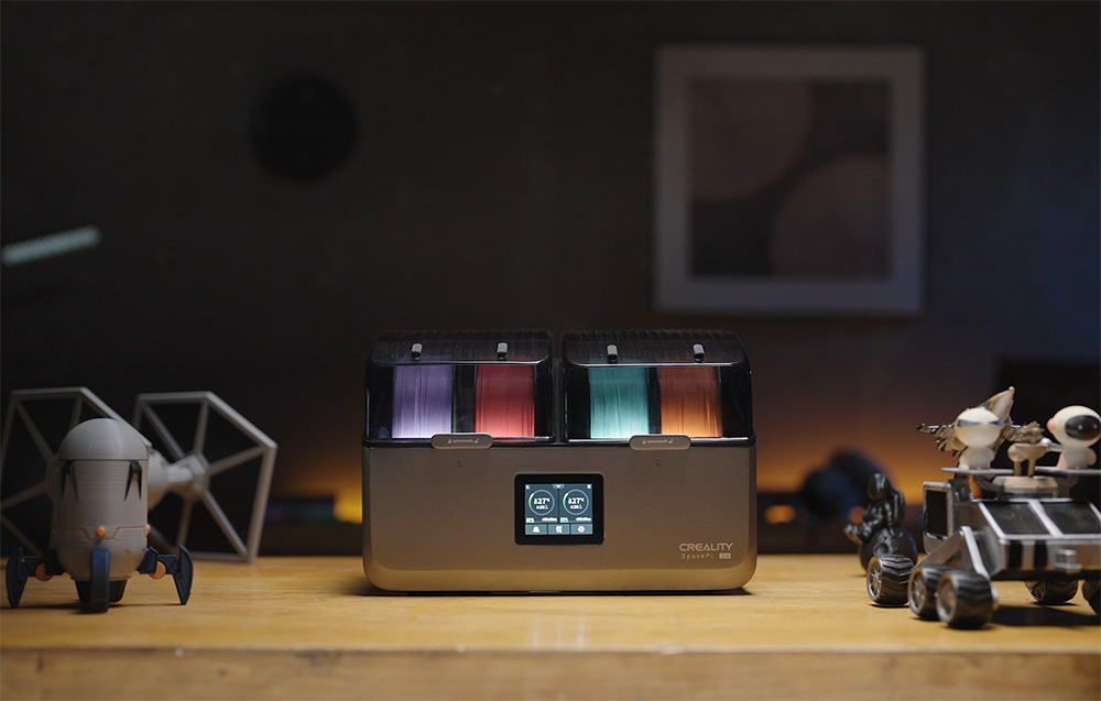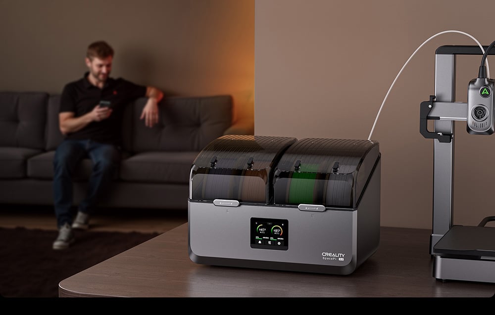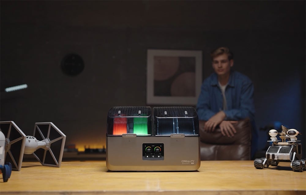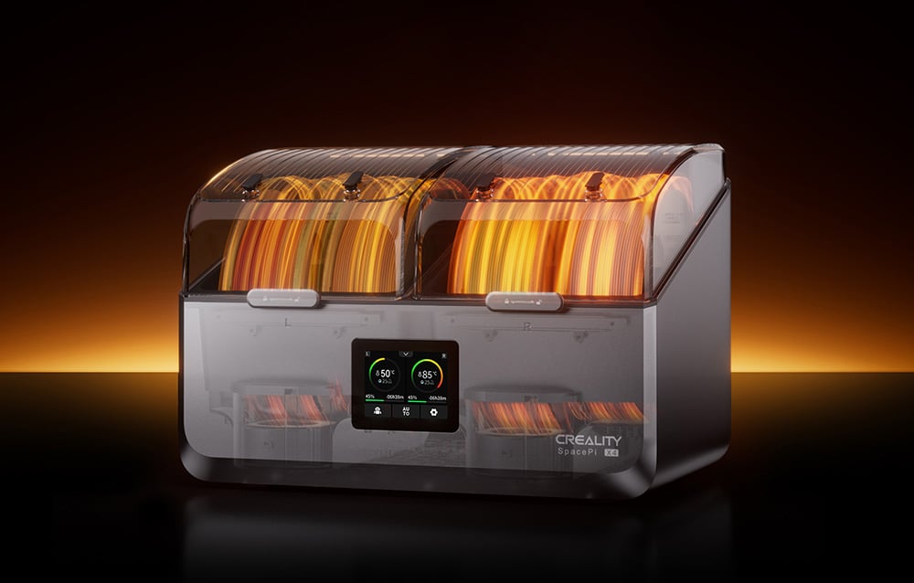 A Creality SpacePi X4 egy nagy teljesítményű, kétkamrás szálszárító, amely lehetővé teszi akár 4 orsó egyidejű szárítását is, 45 és 85°C közötti teljes hőmérséklet-szabályozással. Az aktív párátlanítási technológiának, a gyors fűtésnek és a csendes működésnek köszönhetően reprodukálhatóan és stabilan készítheti elő a PLA, PETG, TPU, ABS vagy PA-CF filamenteket nyomtatásra, kiküszöbölve a nedvesség, a buborékok és a nyomtatás közbeni ütődések problémáját.