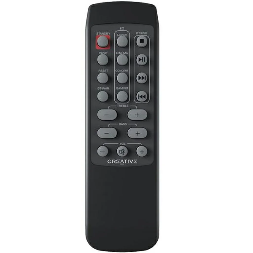 Hangszabályozás vezeték nélküli távirányítóval, előre beállított EQ beállításokkal, basszus és magas hang szabályozással.