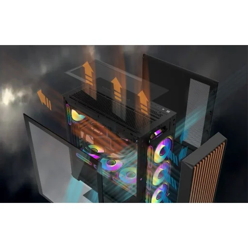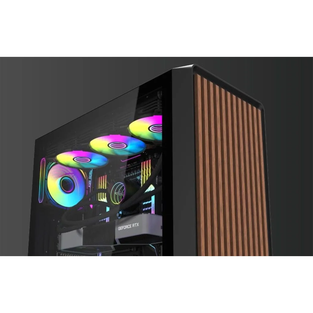 A Darkflash DS900WD egy olyan ház, amelyet olyan felhasználók számára terveztek, akik praktikus megoldásokat keresnek. Az edzett üveg oldallap és a fa előlap jó láthatóságot biztosít az alkatrészek számára, és az egész háznak egyedi megjelenést kölcsönöz. Lehetővé teszi az ATX, M-ATX és ITX formátumú alaplapok beépítését, így nagy rugalmasságot biztosít számítógépének építése során. Tágas kialakításával és többféle rögzítési lehetőségével kényelmes összeszerelést és jó légáramlást biztosít. A készlethez tartozik 4 ventilátor.