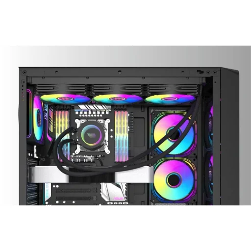 Tartós konstrukció és stílusos kialakítás: A ház teste 0,5 mm-es SPCC anyagból készült, ami nagy tartósságot biztosít. Az egész 470 x 218 x 454 mm méretű, és elfér a szabványos asztal alatti helyeken. A stílusos kialakítás és a ventilátorok megvilágításának lehetősége modern megjelenést kölcsönöz a készletnek.