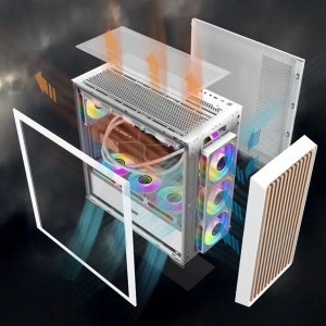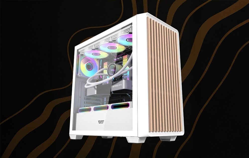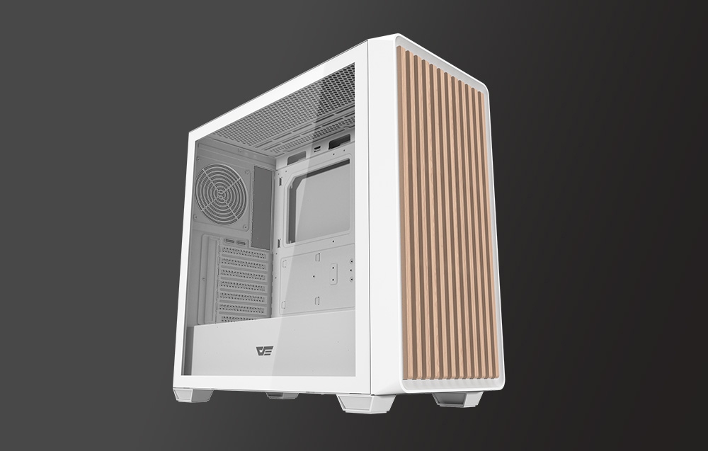 A Darkflash DS900WD egy olyan számítógépház, amelyet olyan felhasználók számára terveztek, akik praktikus megoldásokat keresnek. Az edzett üveg oldallap és a fa előlap jó láthatóságot biztosít az alkatrészek számára, és az egész háznak egyedi megjelenést kölcsönöz. Lehetővé teszi ATX, M-ATX és ITX formátumú alaplapok beépítését, így nagy rugalmasságot biztosít számítógépe építése során. Tágas kialakításának és többféle rögzítési lehetőségének köszönhetően kényelmes készletösszeszerelést és jó légáramlást biztosít.