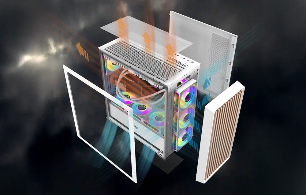 A ház akár 425 mm hosszú grafikus kártyát és 170 mm magasságig CPU-hűtést is befogad. A 7 PCI-E bővítőhely lehetővé teszi, hogy a készlet további bővítőkártyákkal bővíthető legyen. A tárolóeszközök számára két HDD vagy egy SSD és egy HDD számára biztosított a hely, így a játékok és fájlok számára nem fog elfogyni a hely.