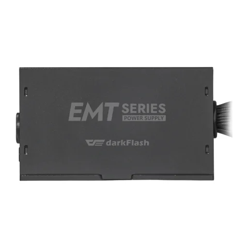 A DarkFlash EMT850 egy 850 W teljesítményű számítógépes tápegység, amely az ATX szabványnak megfelelően készült (140 × 150 × 86 mm). Az egyetlen +12 V-os vonal akár 70 A-t is képes leadni, így ideális a legújabb processzorok és grafikus kártyák számára. A 80 PLUS Bronze tanúsítás biztosítja az akár 87,03%-os energiahatékonyságot, csökkentve az energiaveszteséget és stabil működést garantálva terhelés alatt.