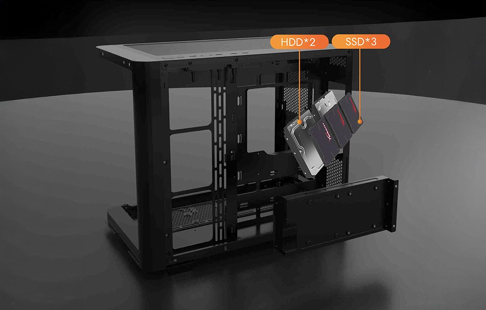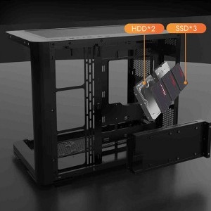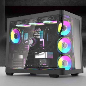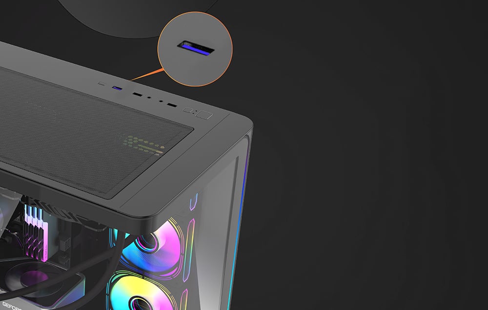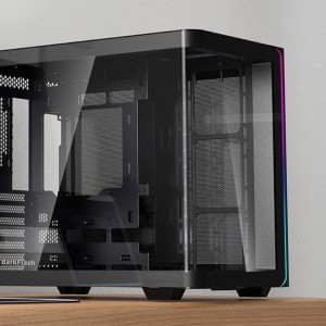 Az ívelt edzett üveg igazi mestermű, amely lehetővé teszi, hogy teljes mértékben láthatóvá váljanak a tokba szerelt számítógép alkatrészei. Ezáltal számítógépe nemcsak hatékony, hanem esztétikailag is lenyűgöző lesz. Az egy darabba integrált üveg egységes, elegáns dizájnt hoz létre, modernista jelleget kölcsönözve az egésznek.