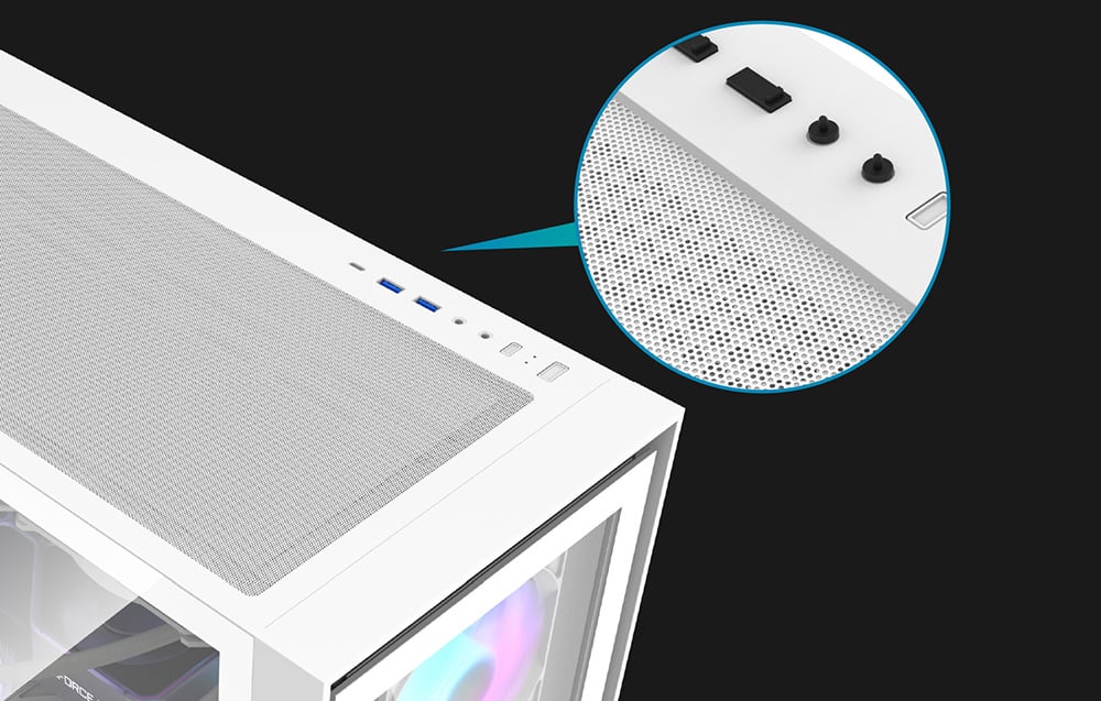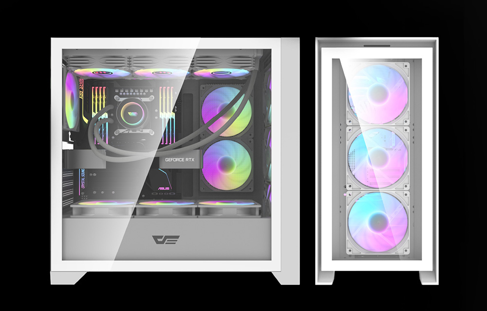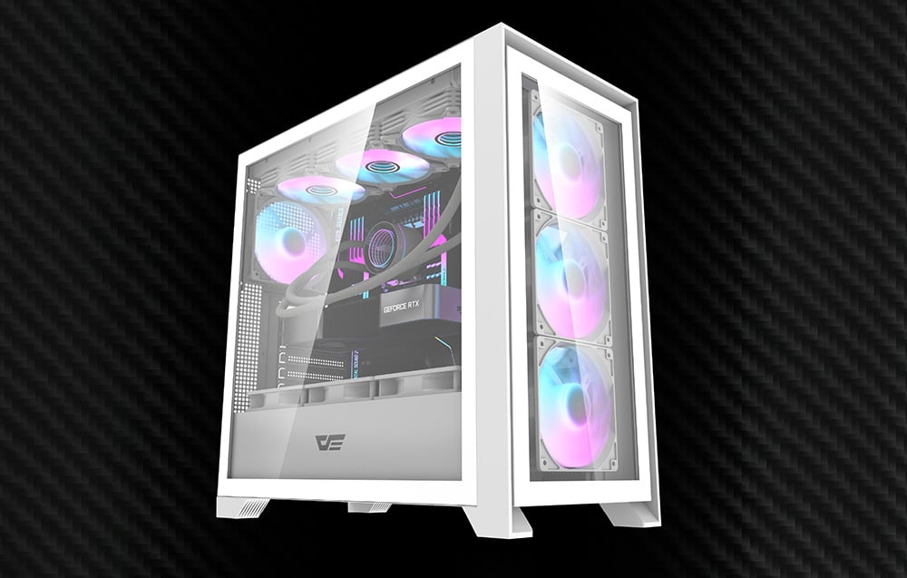 A Darkflash DRX90 Üveg ház tökéletesen illeszkedik a modern PC-készletek esztétikájába. Az elülső és oldalsó edzett üveglapok lehetővé teszik az alkatrészek teljes feltárását és a számítógép belsejének lenyűgöző bemutatását, RGB ventilátorokkal kombinálva tökéletes választás a játékhangulat megteremtéséhez.