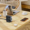 Az álló, kompakt konstrukció és a mellékelt stabil asztali tartó gondoskodik arról, hogy a Tech-Protect DC160W-GAN töltő stabilan és diszkréten illeszkedjen bármilyen belső térbe. A fekete, minimalista burkolat elegáns megjelenést kölcsönöz, miközben megszünteti a sok különálló töltő és kusza kábelek okozta rendetlenséget. Egyetlen töltővel oldhatja meg az összes eszközének energiaellátását, legyen szó akár egyéni használatról, akár több felhasználó (családtagok, kollégák) egyidejű igényeiről.