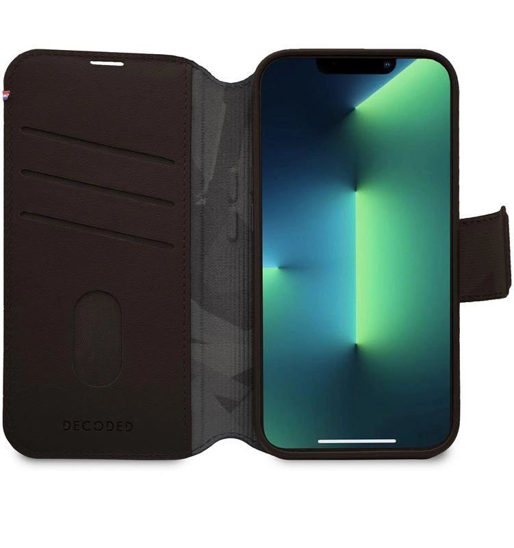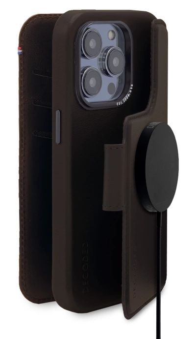 DECODED - Levehető pénztárca PRÉMIUM BŐR TOK A LEVEHETŐ SOROZATRÓL A Decoded levehető pénztárca egy 2 darabból álló bőr iPhone tok. A belső rész hagyományos védőtökként működik, védi a telefont a karcolásoktól és az esések hatásaitól. Pontosan kivágott portokkal és egyedi tervezésű gombfedőkkel rendelkezik, amelyek nem korlátozzák a funkcionalitást. A tok második része egy mágnesesen rögzített réteg, amely pénztárcaként funkcionál. Belül 3 kártyának és egy kiegészítő zsebnek, például bankjegyeknek van hely. A mágneses zár védi az iPhone kijelzőjét. STÍLUS ÉS MINŐSÉG A karcsú levehető pénztárcás tok a legmagasabb minőségű teljes bőranyagból készült, az egyik leghíresebb gyártótól - az ECCO Leather-től. Az egész klasszikus, minimalista formában van tartva, a jellegzetes Decoded akcentussal, apró varrással a tok szélén a márka logójának színeiben. Így hangsúlyozza a Decoded a részletekre fordított figyelmet a termékeiben. Kompatibilis a vezeték nélküli töltéssel és a MagSafe-fel MAGSAFE A tok belső részébe épített mágneses modulnak köszönhetően a tok kompatibilis a MagSafe funkcióval. A MagSafe biztosítja, hogy a telefon pontosan a töltőpontban helyezkedjen el a vezeték nélküli töltőn. Csak helyezze a telefont a töltő mátrixára, és mindkét eszköz vonzani fogja és tökéletesen beállítja egymáshoz, biztosítva a stabil töltést.