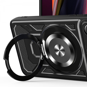 A Defender Armor Mag borító rendkívül tartós okostelefon-védelem, TPU és PC kombinációjából készült, amely maximális ellenállást biztosít az esésekkel, ütésekkel és karcolásokkal szemben. Jellemzője egy fém forgógyűrű 360°, amely ujjfogó és tartó, lehetővé téve a telefon kényelmes használatát függőleges és vízszintes helyzetben egyaránt. Szén textúra modern, technikai megjelenést kölcsönöz, míg a megerősített kamera keret fokozza a lencse védelmét.