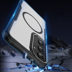 A Defender Carbon Mag borítás megbízható védelmet nyújt a telefon számára, ötvözve a tartósságot a modern dizájnnal, teljes körű biztonságot kínálva a felhasználók eszközei számára. Rugalmas TPU-ból és tartós PC-ből készült, hatékonyan védi a telefont az ütésektől, sokkoktól és karcolásoktól, miközben vékony profilt tart meg mindössze 2 mm vastagsággal.