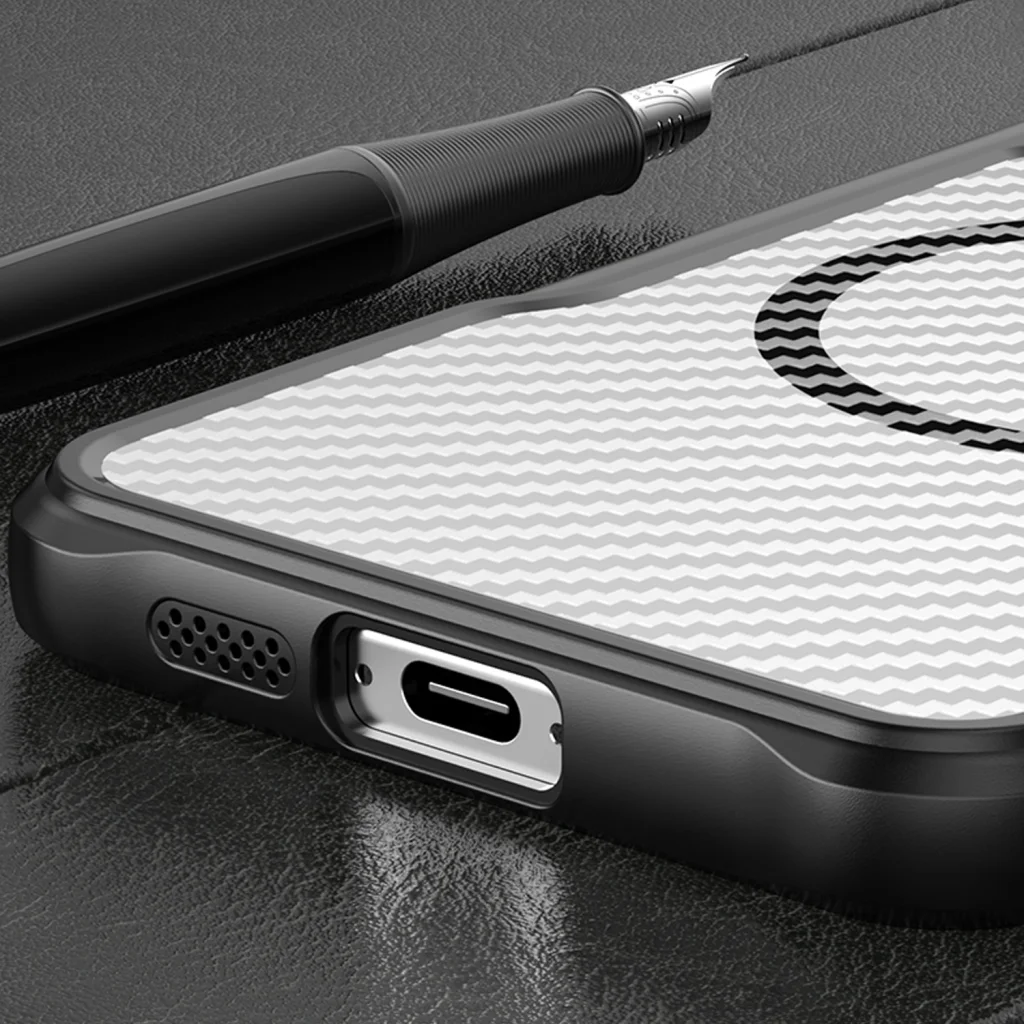 A Defender Carbon Mag borítás megbízható védelmet nyújt a telefon számára, ötvözve a tartósságot a modern dizájnnal, teljes körű biztonságot kínálva a felhasználók eszközei számára. Rugalmas TPU-ból és tartós PC-ből készült, hatékonyan védi a telefont az ütések, sokkok és karcolások ellen, miközben vékony profilt tart meg mindössze 2 mm vastagsággal.
