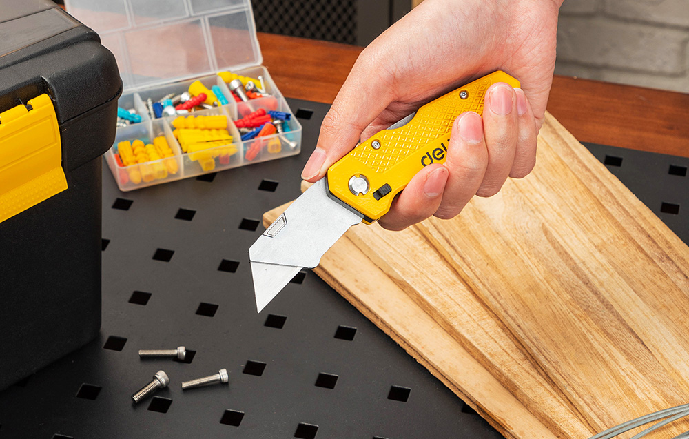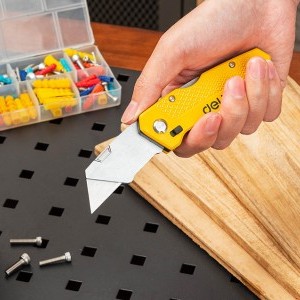A Deli Tools EDL006Z barkácskés számos helyzetben jól működik. A kompakt, masszív kialakítás magas kényelmet biztosít a használat során. Az eszköz egy penge kiterjesztési mechanizmust kínál, amely SK2 szénacélból készült. A készlet 5 további pengét tartalmaz, amiket könnyedén kicserélhet újakkal.