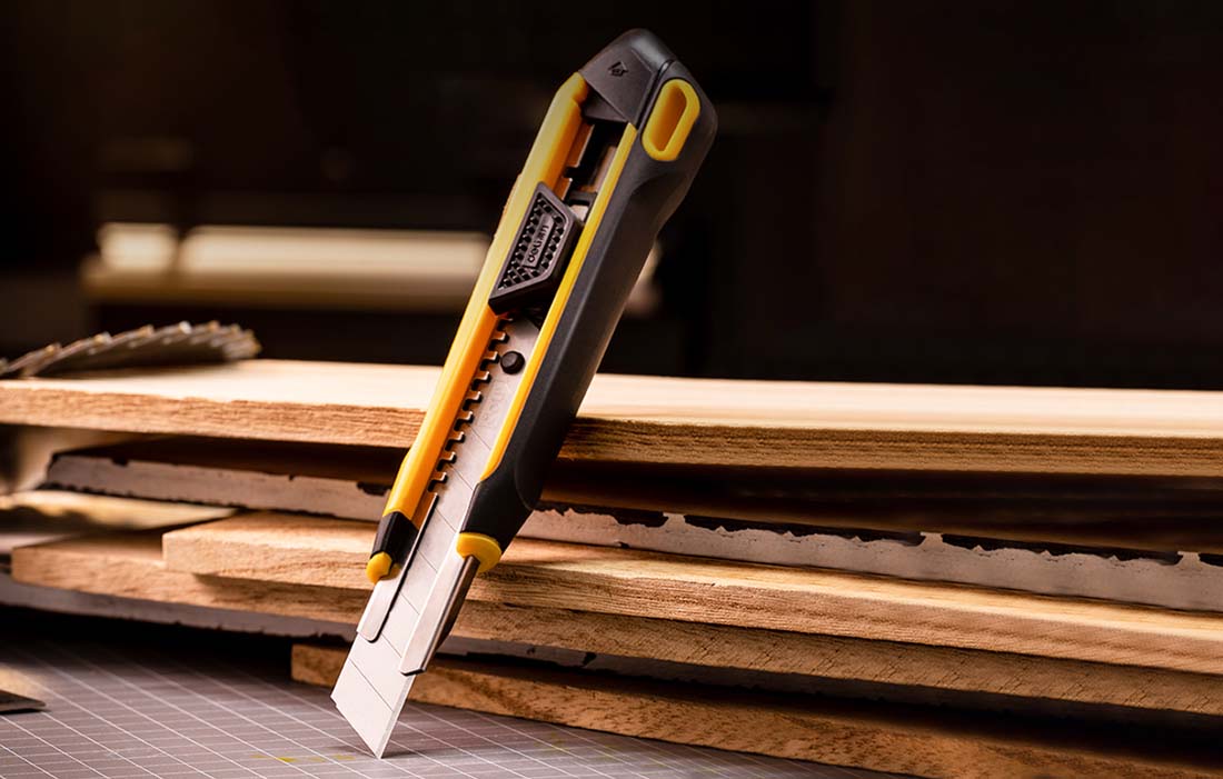 Eredeti, teljesen professzionális és funkcionális kés törhető pengével a Deli-től. Magas minőségű műanyagból készült. Az ergonomikus forma biztos fogást és kényelmes használatot biztosít, valamint a masszív műanyag gomb lehetővé teszi a penge hosszának változtatását.