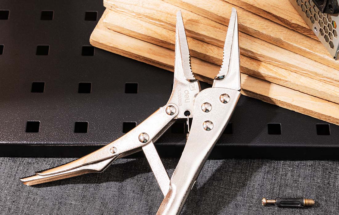 A Deli EDL20015B hosszú orrú zárófogók sokoldalúan kihasználhatók műhelyedben. Kiváló minőségű szénacélból készültek, ami biztosítja a tartósságot és az erősséget. A fogazott pofák erős szorítást biztosítanak. Az állítható csavar lehetővé teszi a szorítás méretének egyszerű beállítását, és a speciális záró- és oldókar segítségével deformálás nélkül szoríthatja össze a kiválasztott részeket. A lekerekített pofákba beépített kábelvágó penge is található.