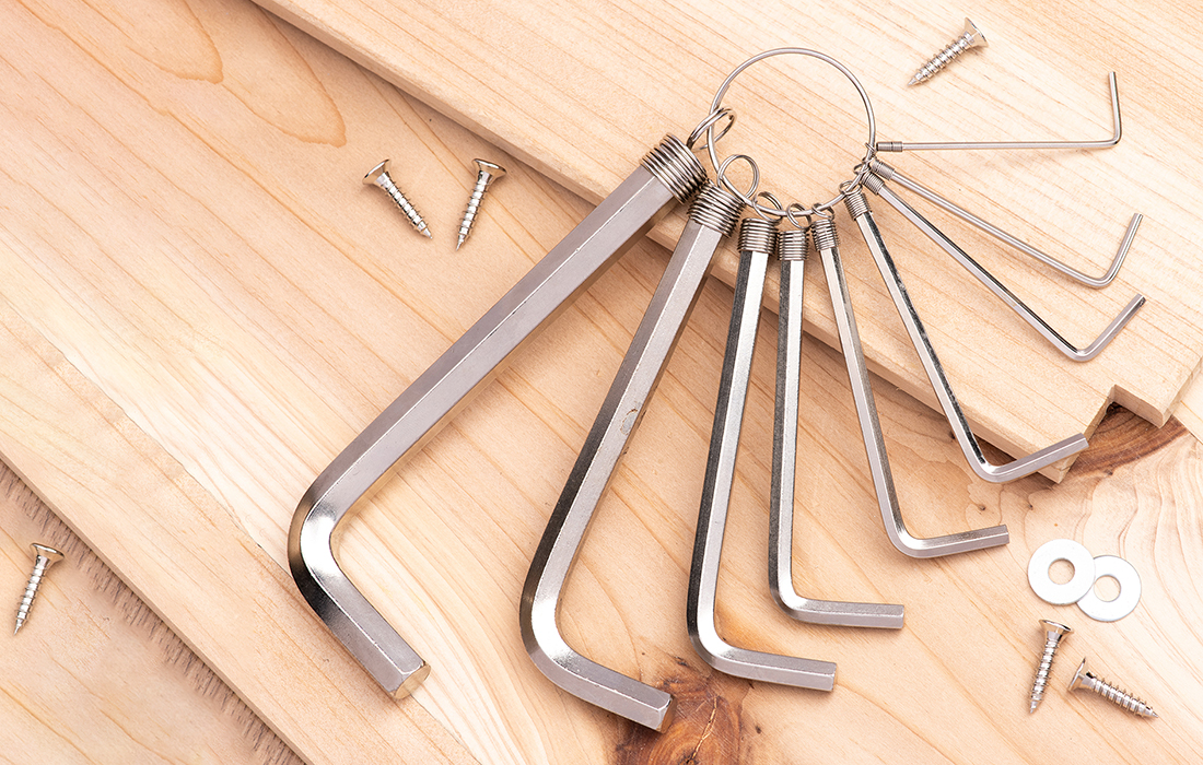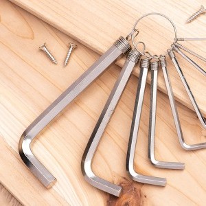 10db-os imbuszkulcs készlet, különböző méretekben. A szettben található gyűrű megkönnyíti a szerszámok tárolását és szállítását.