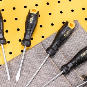 A Deli Tools EDL620006 készlet 6 különböző precíziós csavarhúzót tartalmaz, mint például SL5x75mm, SL5x100mm, SL6x150mm, PH1x75mm, PH1x100mm és PH2x150mm. Ezek mindegyike kiváló minőségű króm-vanádium acélból készült, és csúszásmentes, tartós műanyag fogantyúval rendelkezik. Ideálisak bármilyen otthoni vagy műhelyi munkához. Mind az amatőrök, mind a profi felhasználók elvárásainak megfelelnek.